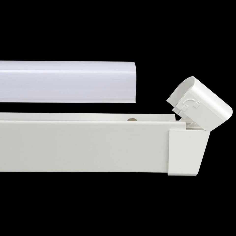 Denna lysrörsarmatur är idealisk både för nya installationer och som ersättning för äldre lysrörsarmaturer som använder T8 och T5-rör. Med en spridningsvinkel på 110 grader och en grundinställning på 50W erbjuder den en kraftfull och effektiv belysning. Verktygslös" inkoppling med snabbplintar och överkopplingsbar med 5-poliga plintar (5x2,5mm²) vid varje gavel.