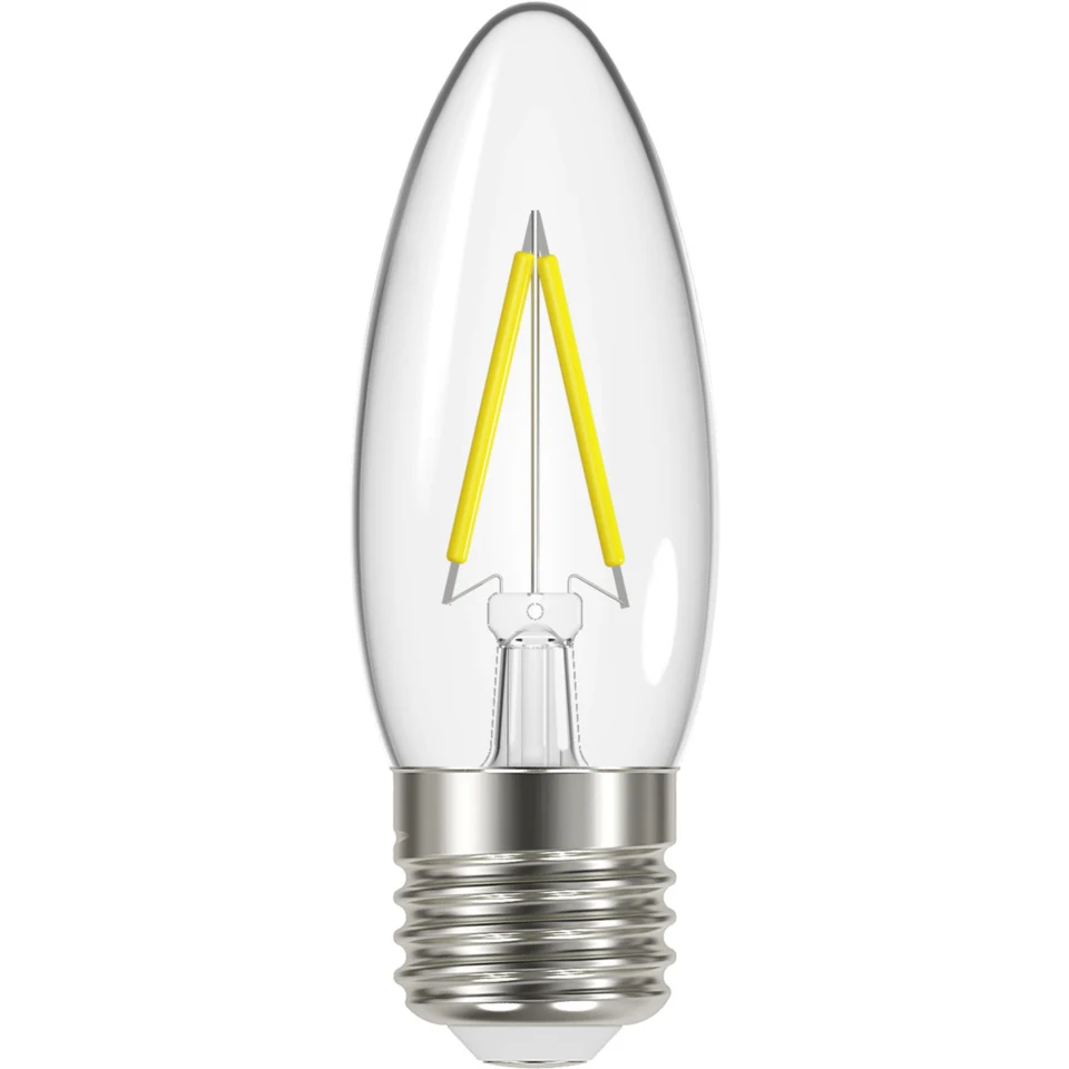 Namron LED Filament Kron 6W E27 2700K är en kronformad LED ljuskälla med klart glas. De synliga filamenten för tankarna bakåt till de mer traditionella glöd- och halogenlamporna men det gör även ljuskällan vacker att se både tänd och släckt. Ett varmvitt sken avges från den här ljuskällan med en färgtemperatur på 2700K. Denna ljuskälla har en 6W effekt och E27 sockel - den passar därför i många moderna armaturer.