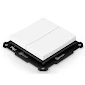 Plejd Trådlös Tryckknapp WPH-01 levereras med enkelvippa och dubbelvippor, finns för Exxact Vit, Exxact Antracit, Elko RS/Plus Vit, Elko Plus Svart. Ram ur dessa sortiment köpes till separat.