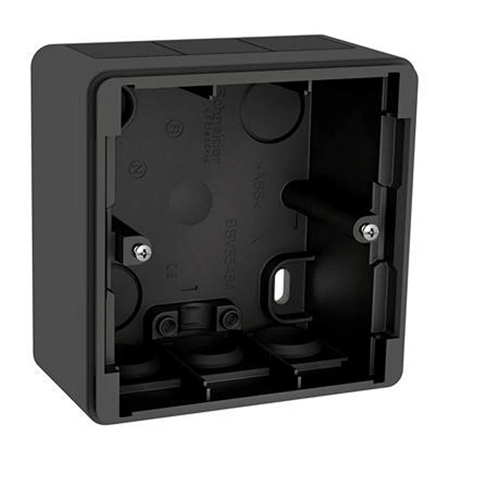 Schneider Exxact Dosa för IP44. Dosa för utanpåliggande montage IP44 med 6st integrerade strypnipplar. Utbrytning i bottendel.