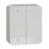 Schneider Exxact Surface Strömställare UTP för utanpåliggande montage med integrerad bottenplatta, ingångar för kablar finns på baksidan genom utbrytning i bottenplatta. Kan kompletteraas med impulsfjäder för återfjädrande funktion.