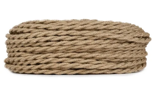 Tvinnad Textilkabel Jute 2x0,75mm² Säckväv 2 ledare är en tvinnad textilkabel i säckväv. Tygkabeln har dimensionerna 2x0,75mm². Priset är per meter och säljs endast i hela meter.