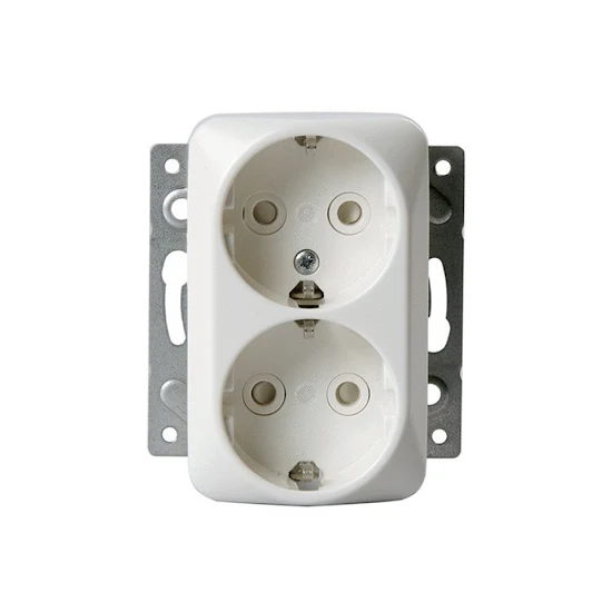 Jussi 2-vägs insatser jordat vägguttag, alpinvit, halogenfri. För infällt montage. Petskyddad. 10/16 A. Med snabb- alternativt skruvanslutning. 2-vägs insatserna har 2 st neutrala överkopplingsklämmor.