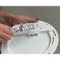 Taklampan kan installeras direkt mot taket eller infällt tack vare en smart bygel. Bygeln har justerbara sidoclips som gör det möjligt att anpassa diametern för montering i befintliga hål. Vid installation direkt mot taket kan clipsen tas bort. Perfekt för korridorer, kök, allmänutrymmen och liknande miljöer.